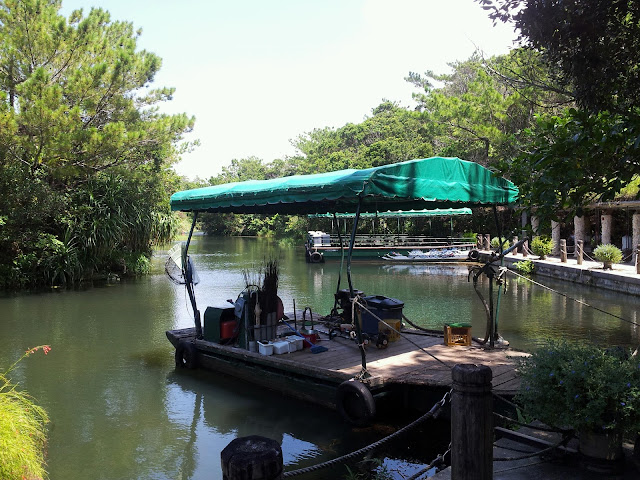 We came around another bend to find a traditional Okinawan dressed dancer, performing some cultural dance on a moored boat. Again not accidental as we had passed the boat 10 minutes before going the other way and it had been empty.